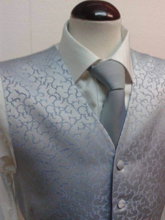 Conjunto de chaleco ,corbata y pañuelo.Chaleco confeccionado en tejido brocado con corbata lisa.